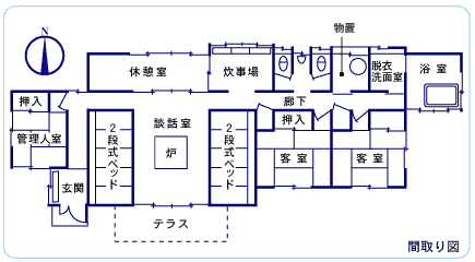 構造:木造 平屋建 内訳:和室 6 帖 2 室・2 段式ベッド 延 20 床